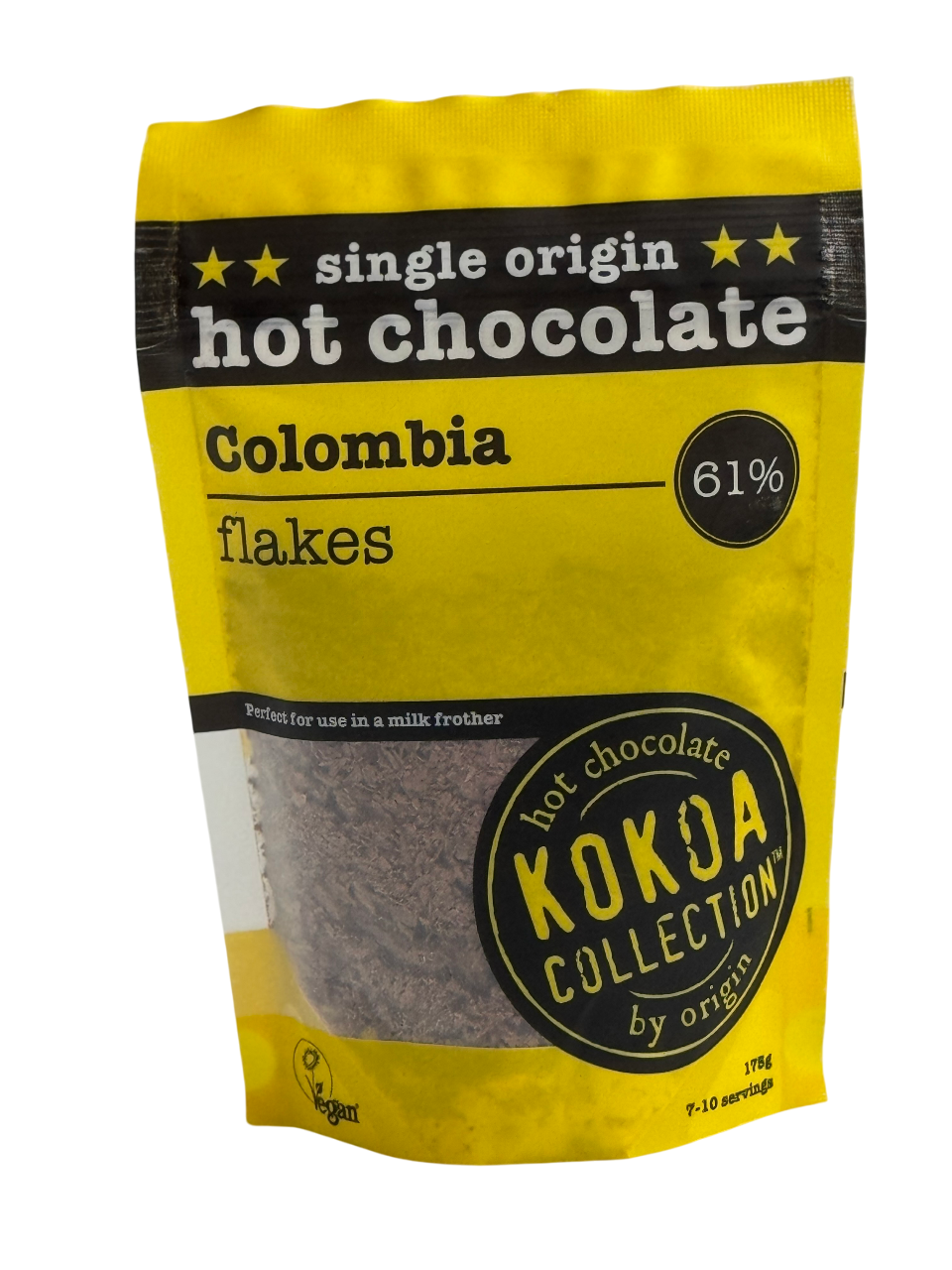 All our flakes are very finely grated chocolate so the appearance is more like a powder. Makes it easiest to use by baristas in cafes. Perfect for garnishing cappuccinos and mochas. These chocolate flakes can also be made at home in all automatic milk frothers such as our Dualit models on web shop and a velvetiser.